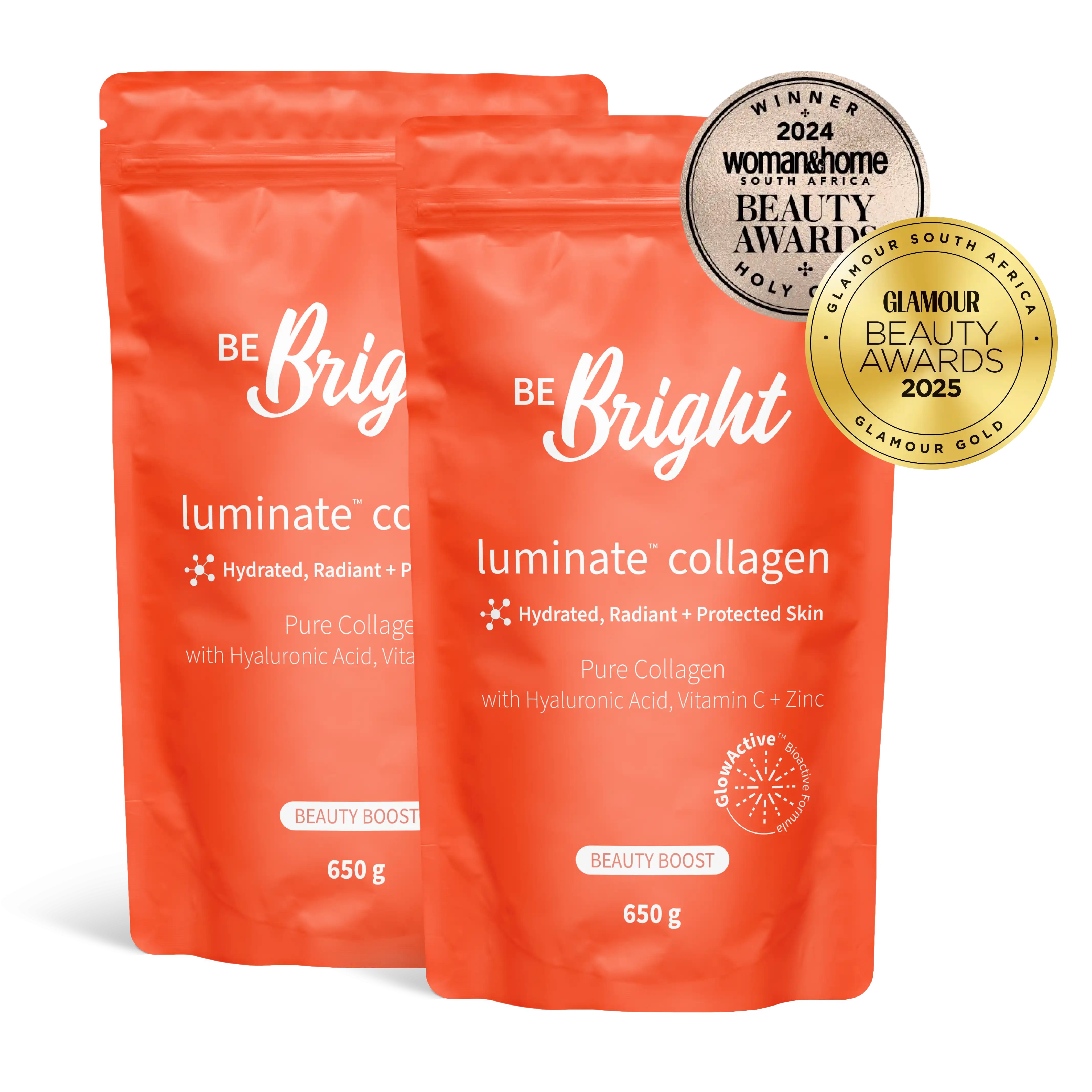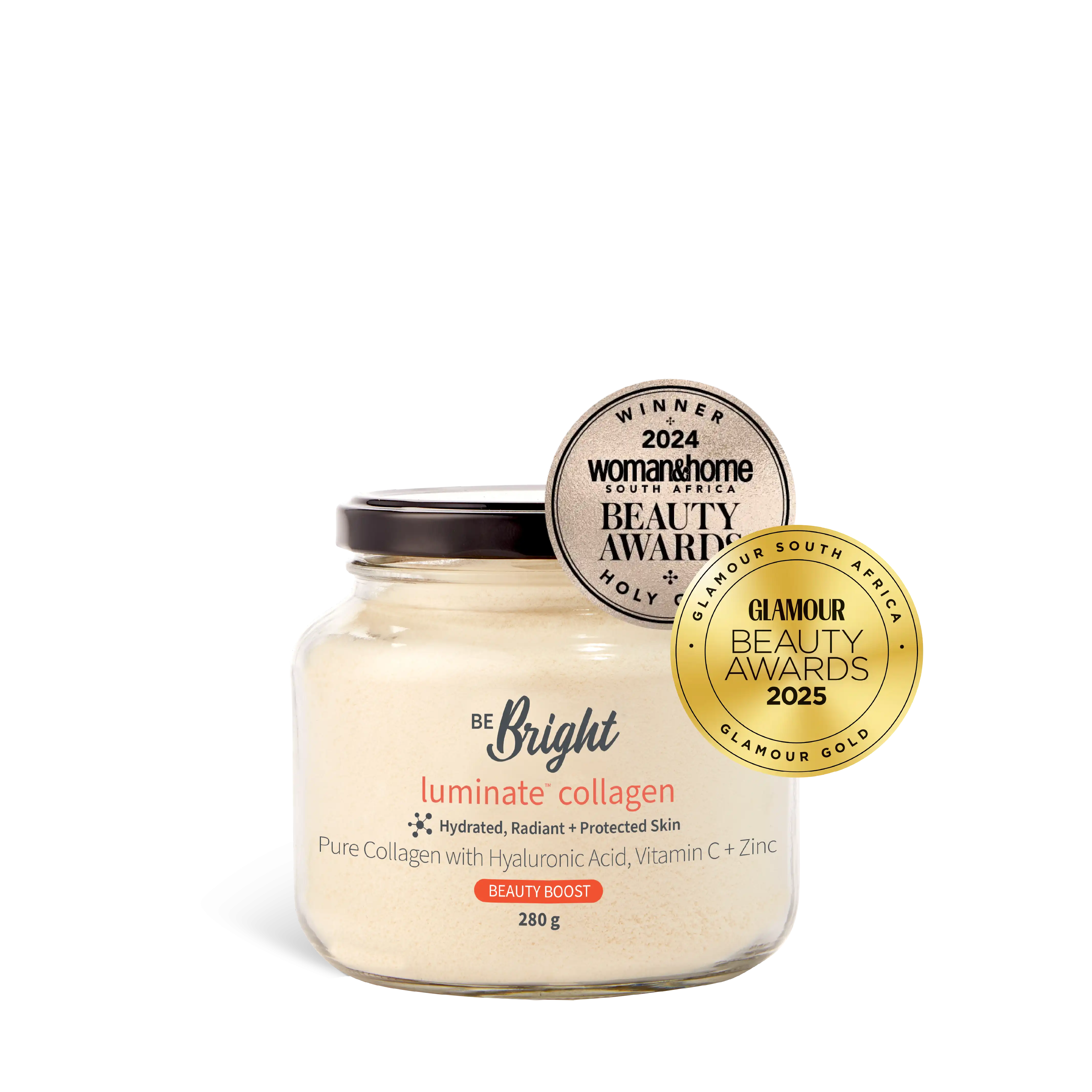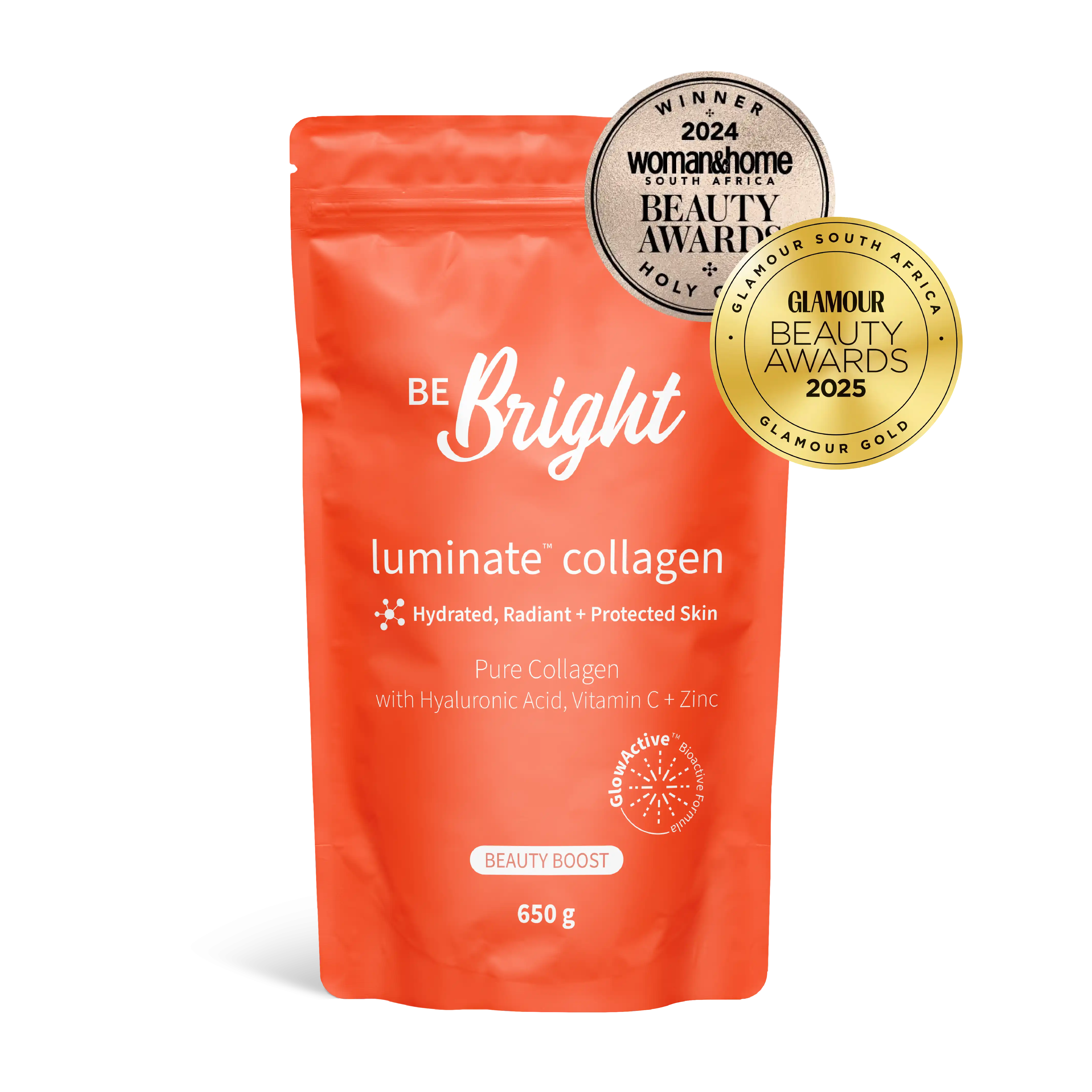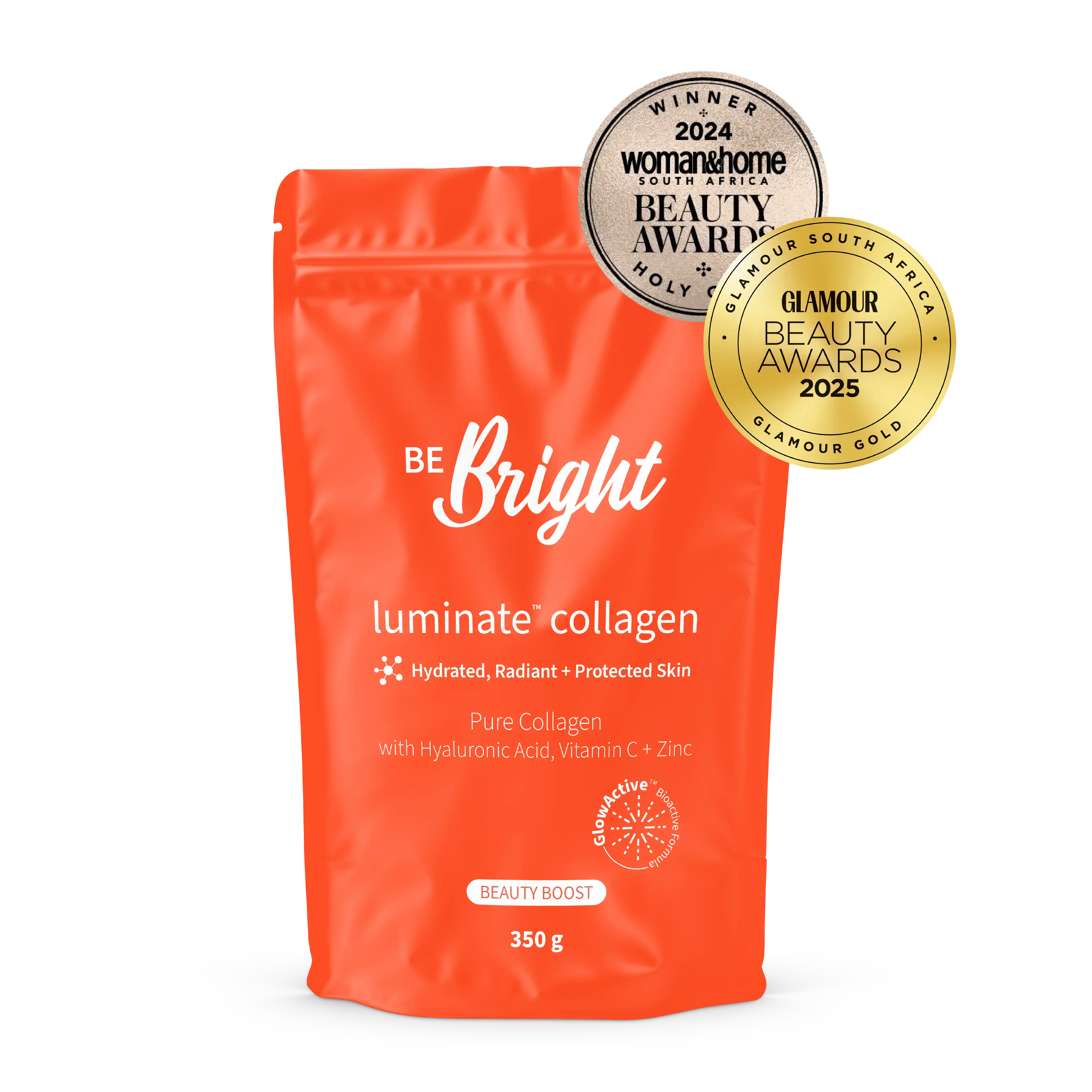 Expertly blended with our GlowActive™ formula: Hyaluronic Acid, Vitamin C and Zinc, Luminate™ Collagen will leave you and your skin glowing from the inside out.
