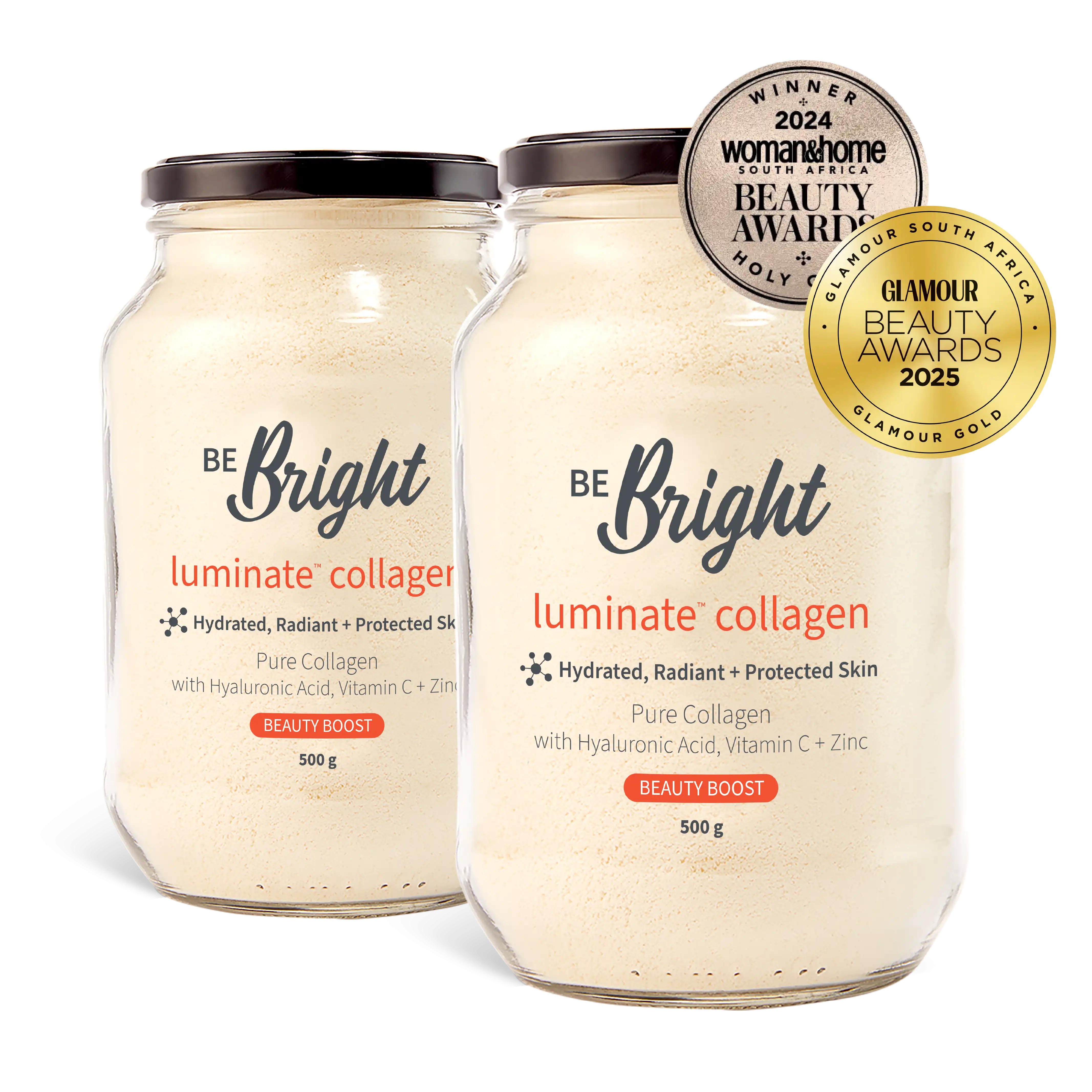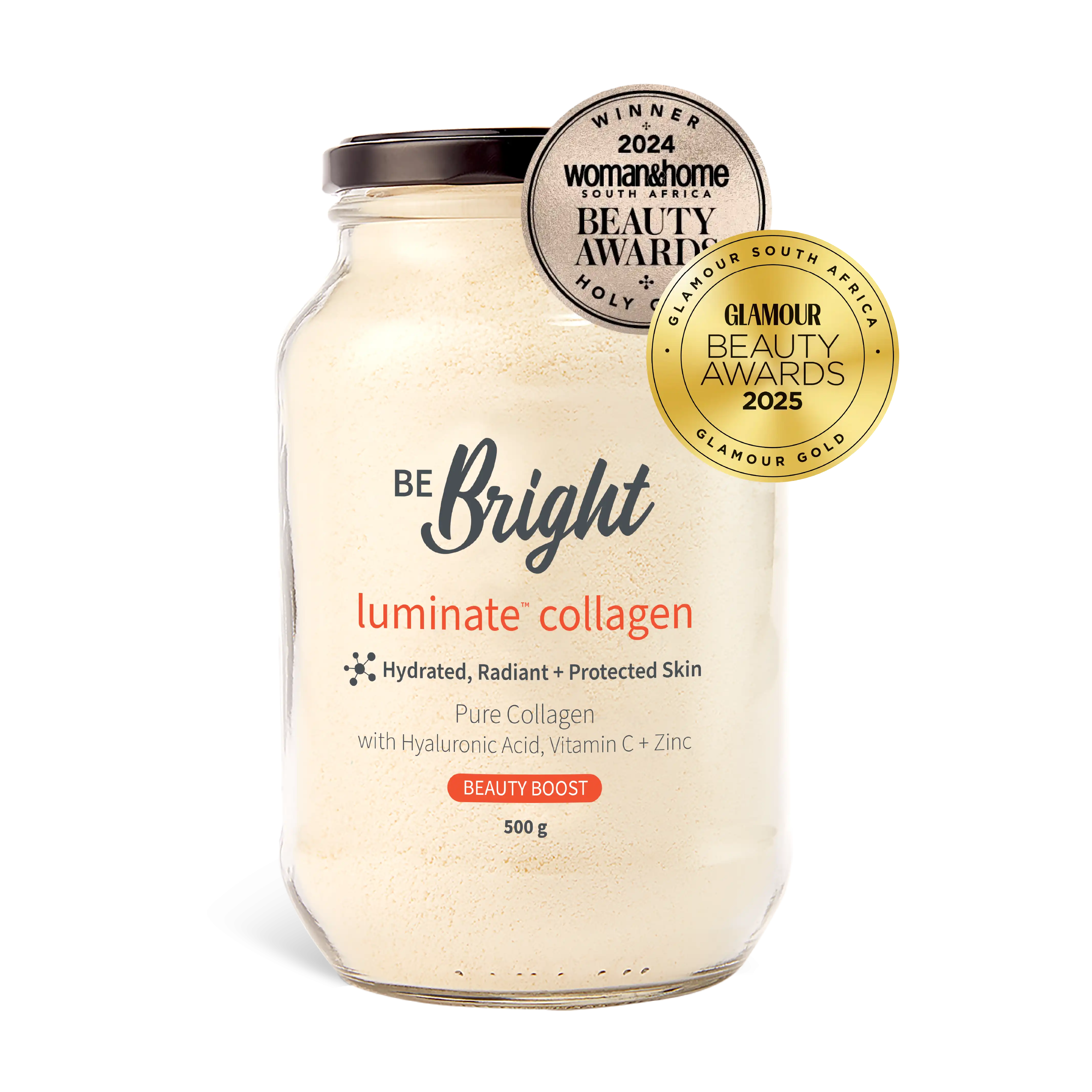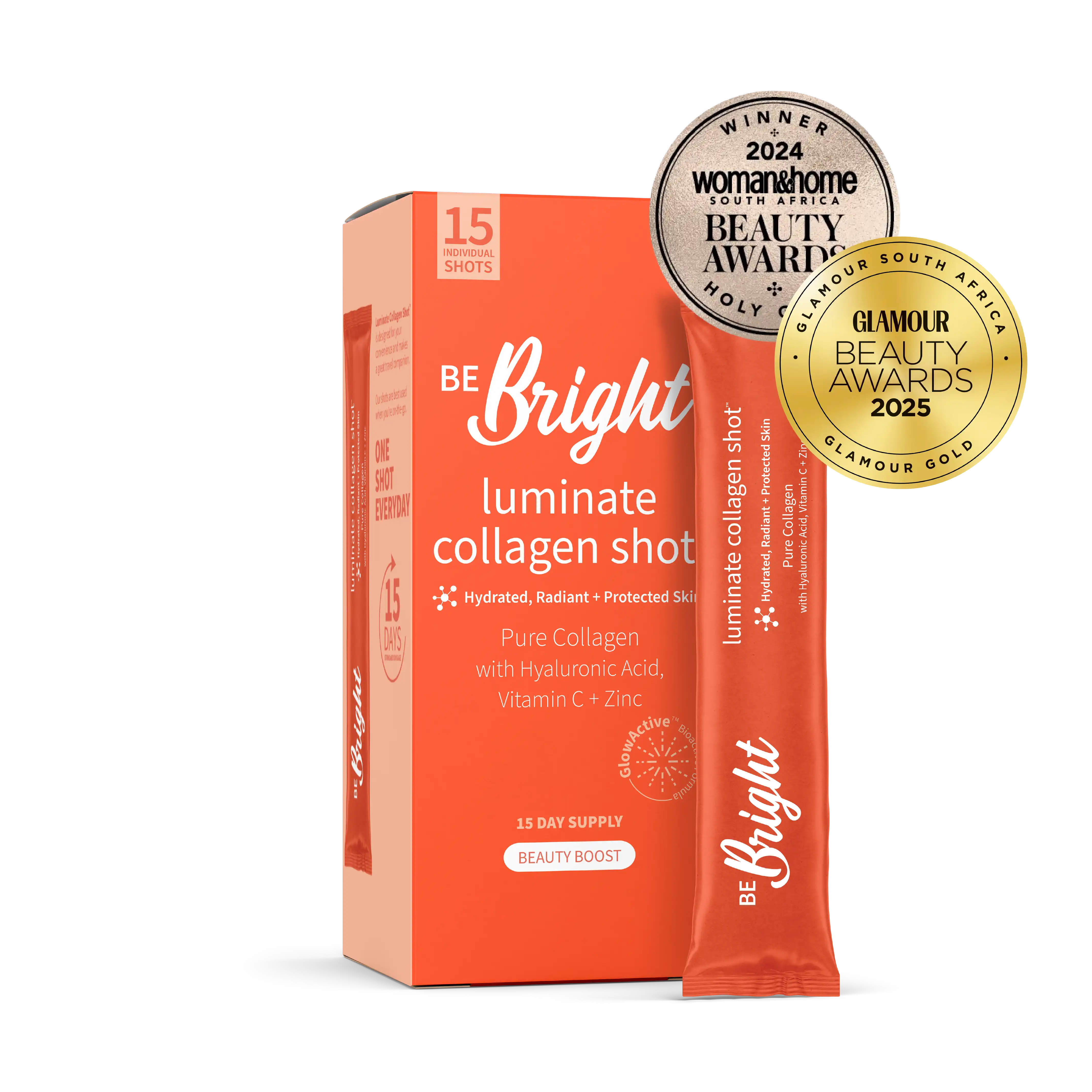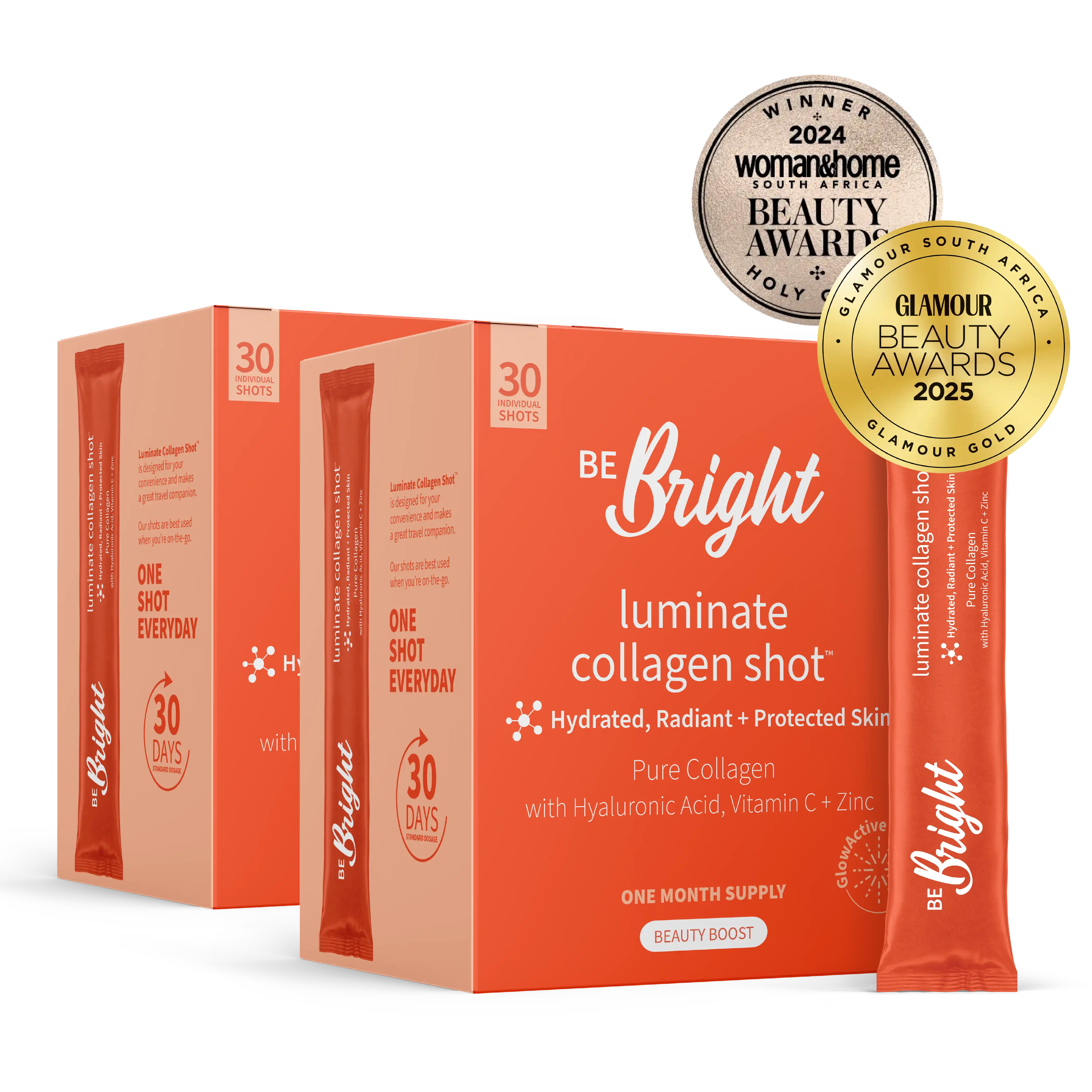Expertly blended with our GlowActive™ formula: Hyaluronic Acid, Vitamin C and Zinc, Luminate™ Collagen will leave you and your skin glowing from the inside out.